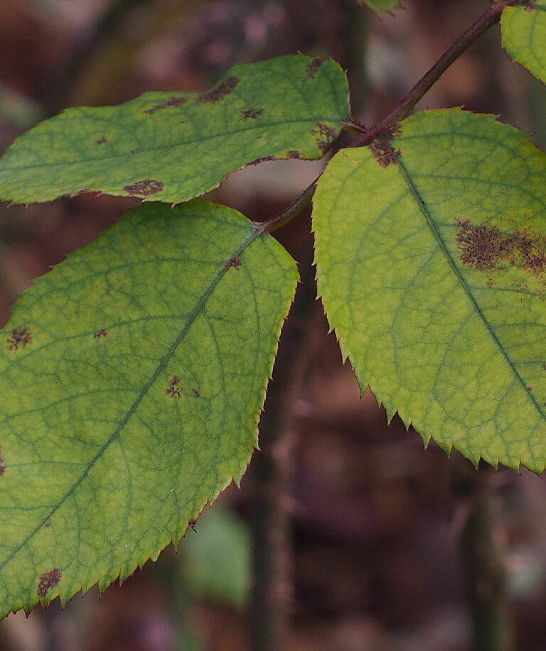 Ο περονόσπορος προσβάλλει κυρίως τα φύλλα αλλά περιστασιακά επίσης τους βλαστούς και τους καρπούς. Προκαλεί αλλοιώσεις στην άνω επιφάνεια του φύλλου, που οριοθετείται από τις φλέβες, οι οποίες αρχικά κιτρινίζουν και μετά γίνονται καφέ. Στην κάτω πλευρά του φύλλου εμφανίζεται μια χνοώδης εξάνθηση που είναι αρχικά λευκή και αργότερα γίνεται γκρι-καφέ. Αυτό είναι ουσιαστικά ο πολλαπλασιασμός με σπόρια των παθογόνων οργανισμών που εξωθούνται από τα στόματα. Στο μαρούλι, μολύνεται πρώτα η βάση και αυτό προκαλεί την κατάρρευση του φυτού. Στο λάχανο μολύνεται επίσης ο βλαστός, σε περιπτώσεις σοβαρής προσβολής. Στο βατόμουρο, μπορεί να εμφανιστούν κόκκινες λωρίδες στους βλαστούς και τους μίσχους λόγω συστηματικής μόλυνσης. Η πρώιμη μόλυνση των καρπών μπορεί να προκαλέσει πρώιμο κοκκίνισμα, οι καρποί καταστρέφονται και συρρικνώνονται. Μεταγενέστερες μολύνσεις προκαλούν το σχίσιμο των μούρων και πιθανή συρρίκνωση ενός ή και των δύο τμημάτων του.