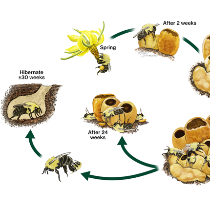 Αυτές οι νέες βασίλισσες θα ζευγαρώσουν με τα αρσενικά, θα εγκαταλείψουν τη φωλιά και ο κύκλος θα συνεχιστεί. Η παλιά βασίλισσα και η φωλιά της θα παρακμάσουν φυσικά στα τέλη του φθινοπώρου.