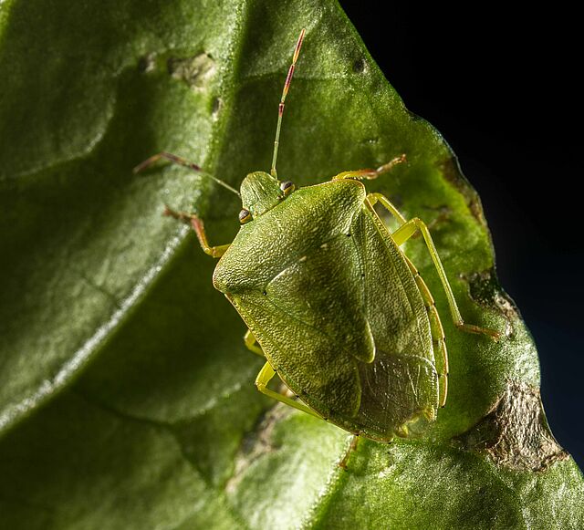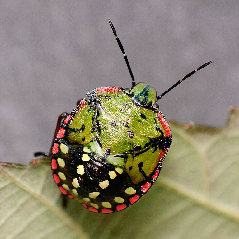 Heteropteran bugs form a group in the order Hemiptera, a highly diverse group of insects, containing both harmful and beneficial species. Heteropteran bugs are insects which have flattened bodies and fold their wings flat over their body when at rest. The wings overlap each other exposing the scutellum, a prominent triangular region of the thorax between the wing bases. This distinguishes them from beetles, which have hard, leathery forewings that meet, but do not overlap, in the dorsal midline. Some bugs produce a pungent odour. Heteropteran bugs are hemimetabolous insects. Their life cycle consists of an egg, usually five nymphal instars and the adult insect. Several species of especially the families Miridae and Pentatomidae are found as pests in agricultural crops.