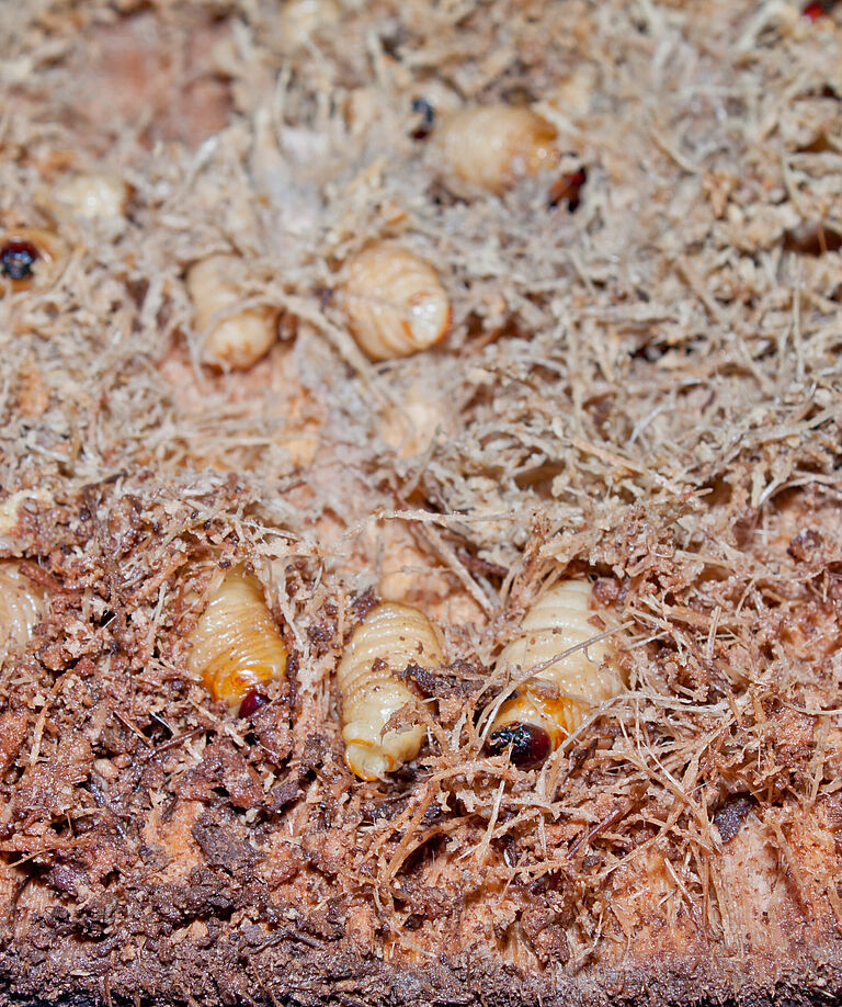 Τα θηλυκά γεννούν αυγά μεμονωμένα σε μαλακούς ιστούς, κυρίως στη βάση των φύλλων. Οι προνύμφες τρέφονται με πιο μαλακούς και υγρούς ιστούς (περιοχές ανάπτυξης) με χαμηλή έως μέτρια αναλογία ινών. Η σίτιση τους προκαλεί αλλοίωση του ιστού, διευκολύνοντας τα ενήλικα σκαθάρια να γεννούν αυγά βαθύτερα στον ιστό. Επιπλέον, αυτό παρέχει σημεία εισόδου για μικροβιακούς παράγοντες που μπορούν να καταστρέψουν περαιτέρω τον ζωντανό ιστό. Λόγω της ειδικής μορφολογίας των φοινικόδεντρων, η άμεση ή έμμεση καταστροφή του κορυφαίου οφθαλμού θα οδηγήσει στον θάνατο του φυτού, γεγονός που καθιστά το κόκκινο σκαθάρι των φοινικοειδών (Rhynchophorus ferrugineus) ένα πολύ επιβλαβές έντομο.