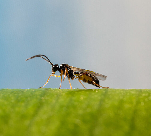 Η παρασιτική σφήκα Aphidius ervi διατίθεται σε μπουκάλι (Ervipar).