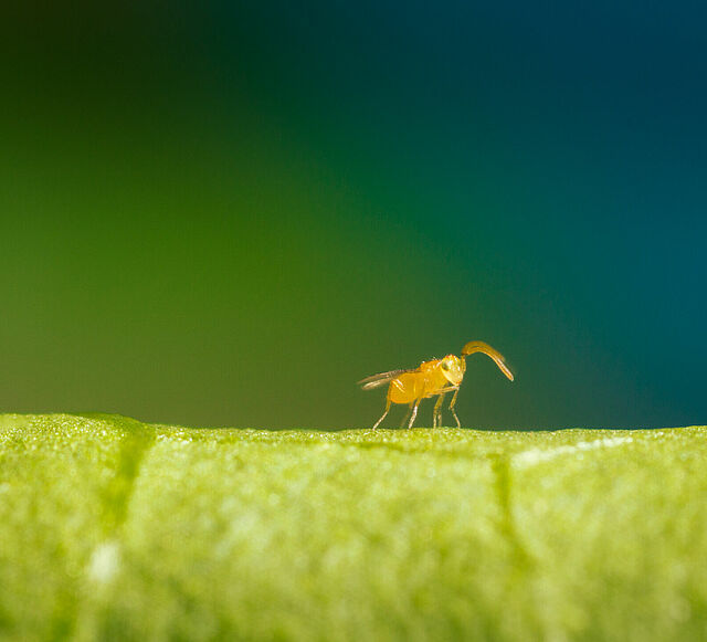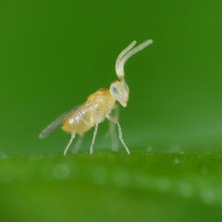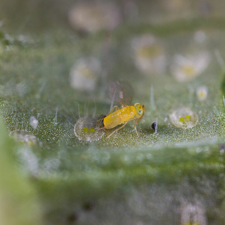 Η παρασιτική σφήκα Eretmocerus eremicus διατίθεται στην Koppert ως Ercal.